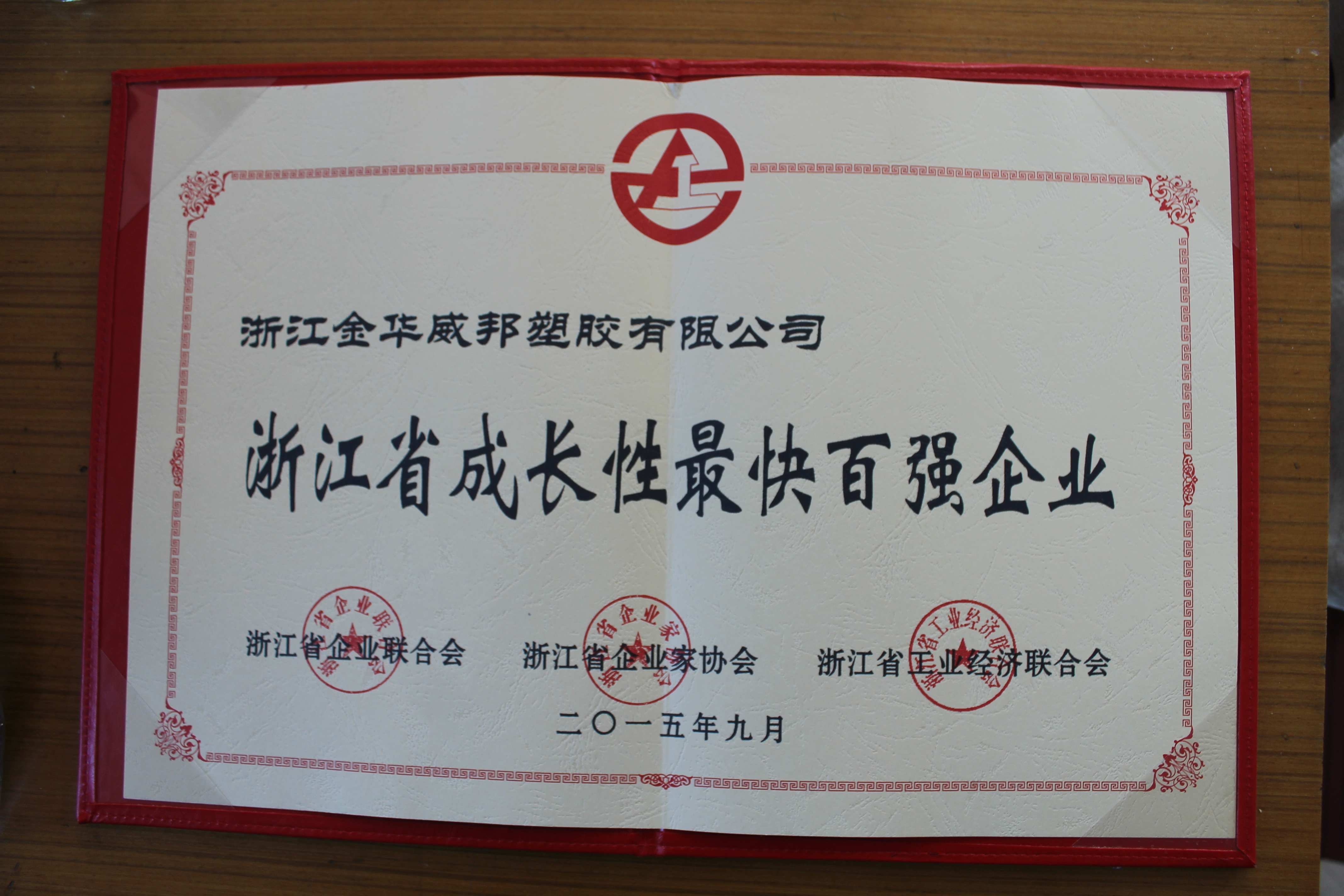 | 热烈庆祝威邦塑胶荣获2015年浙江省成长性最快企业 |