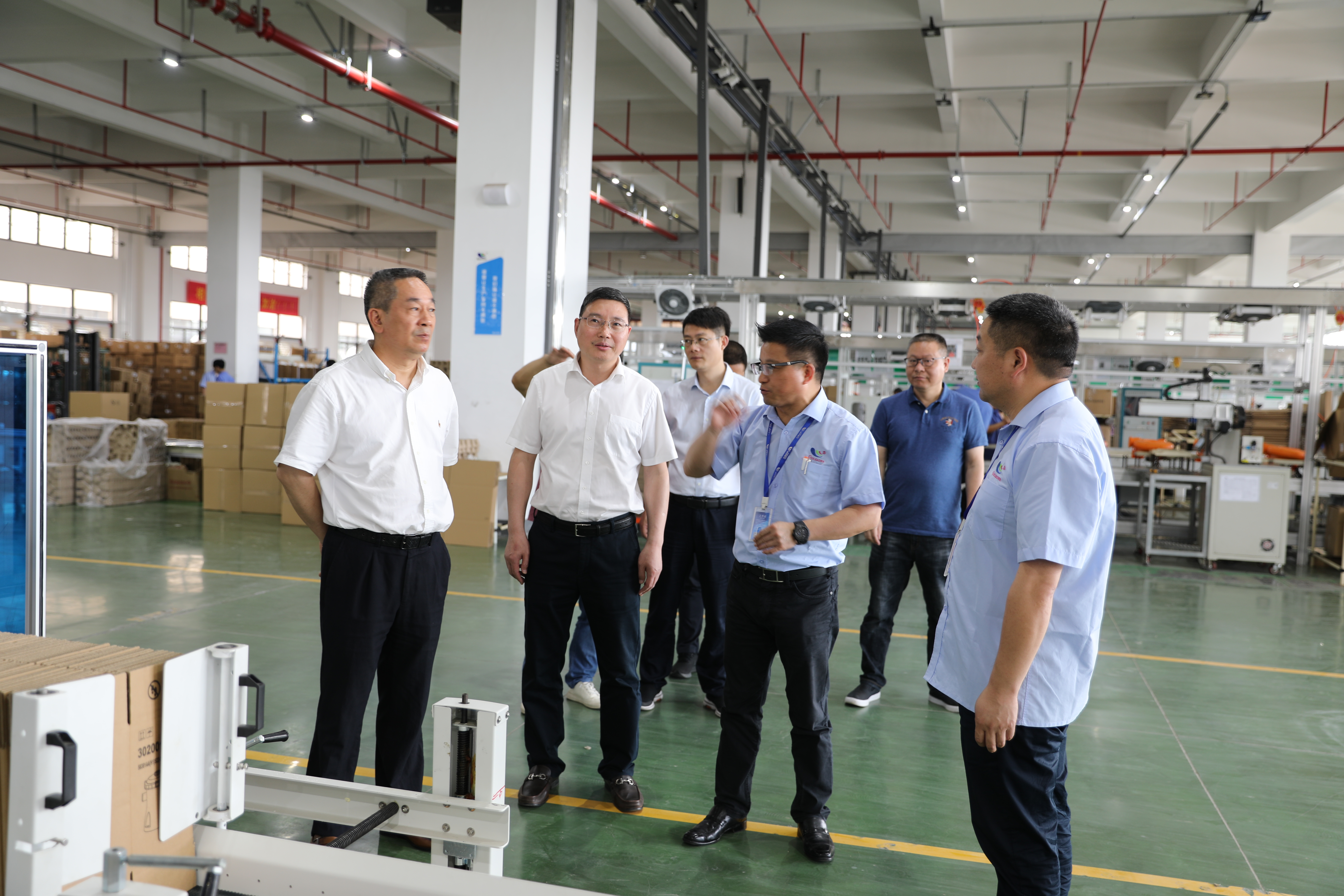 6月7日,金华市政府党组成员、副市长张新宇、市府办副主任陈世河、市府办经济社会研究处处长王磊一行到威邦调研企业数字化经济建设,县政协副主席、金磐开发区党委书记陈平等领导陪同参观,集团董事长陈校波负责全程讲解。