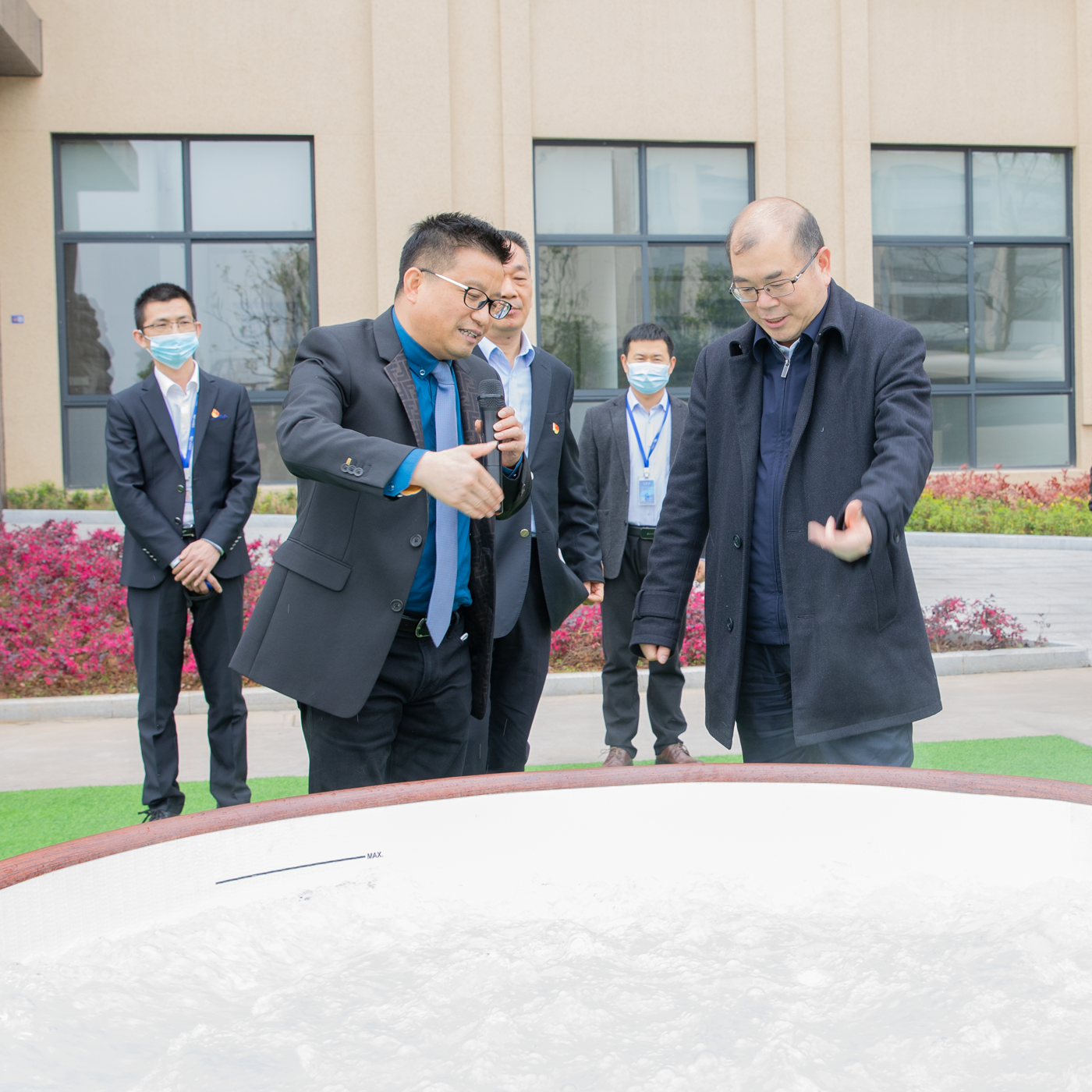 陈董向朱部长一行领导介绍了威邦目前的产业布局、销售情况以及整个集团的安全生产管理等工作。最后,陈董带领朱部长一行考察了数字化生产车间现场,朱部长对威邦的信息化、自动化和安全生产情况给予了高度评价,并殷切地希望威邦在自身发展的同时能够带动整个区域同行业的产业效率,为本行业提供带头示范作用。